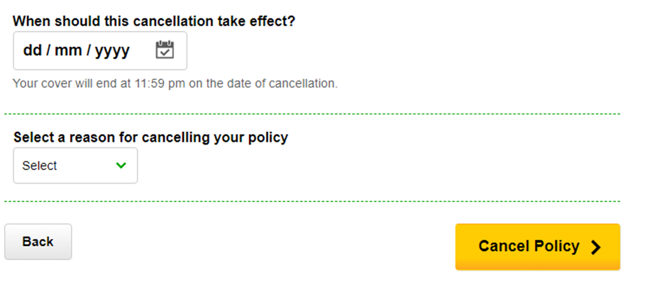 If you have several active policies, Bingle My Account will prompt you to select which policy you want to cancel.